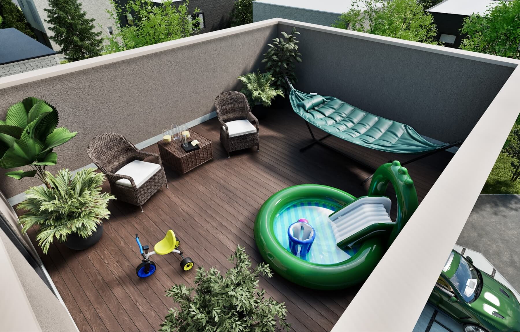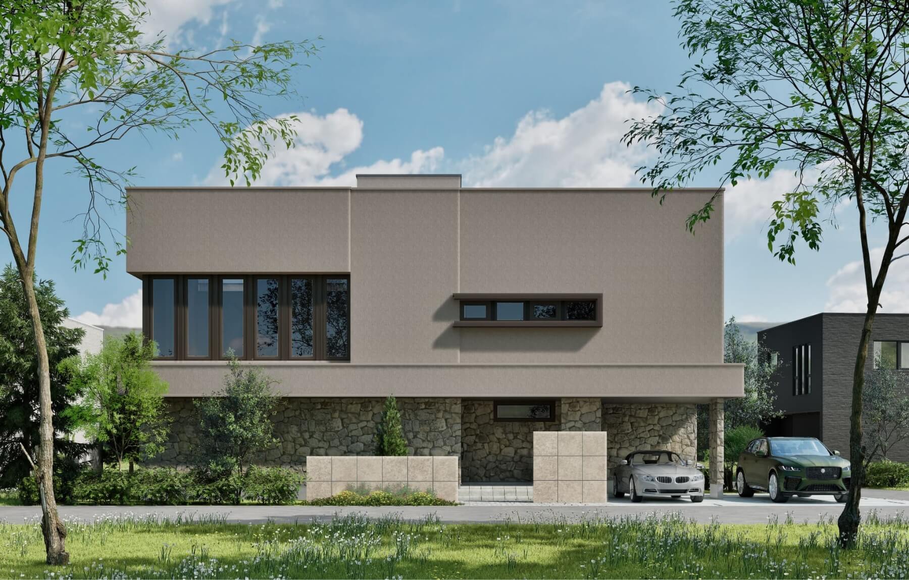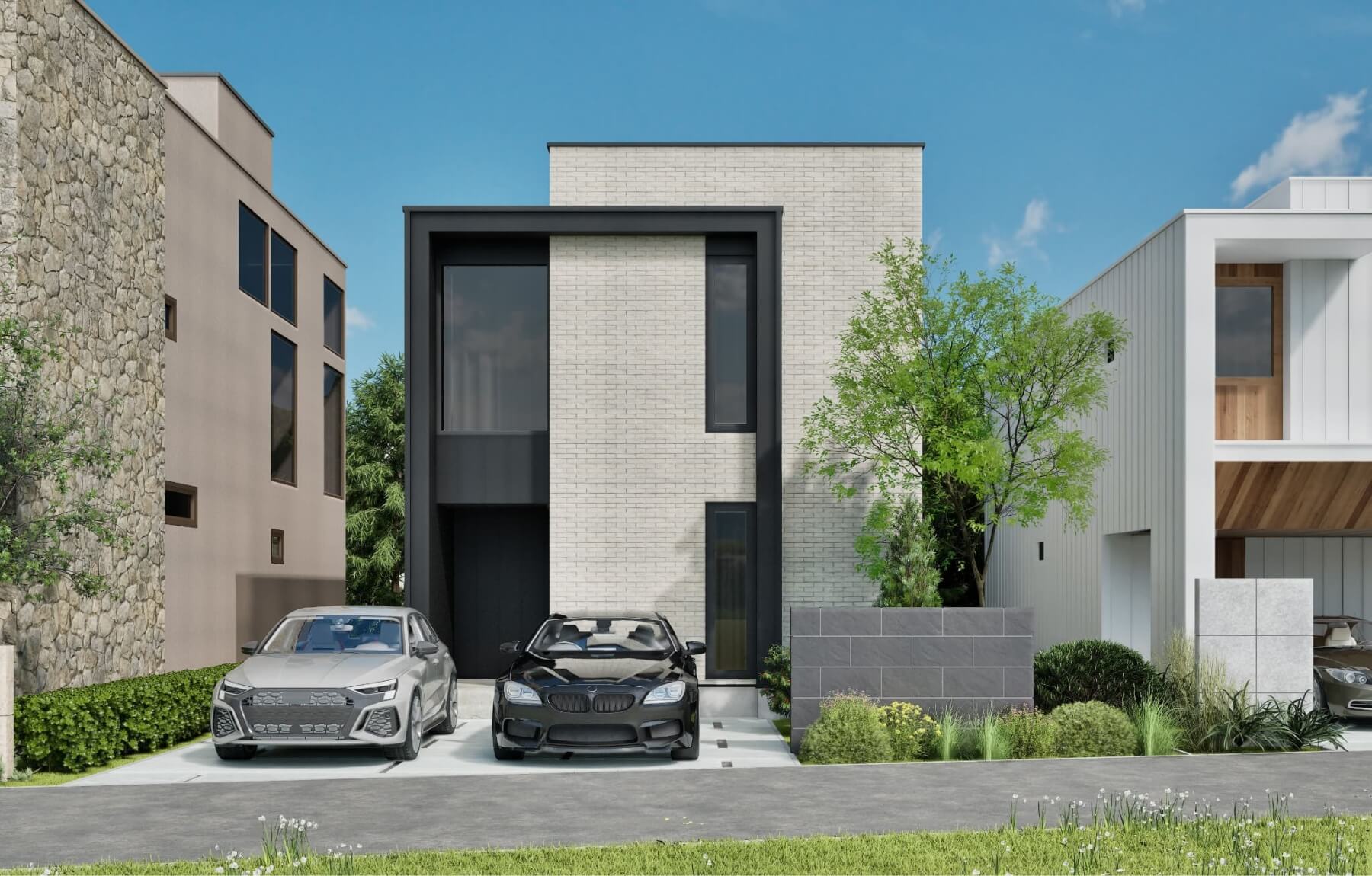 ホーム企画センターによる配置計画と、斎藤greenの手がける緑の調和により、