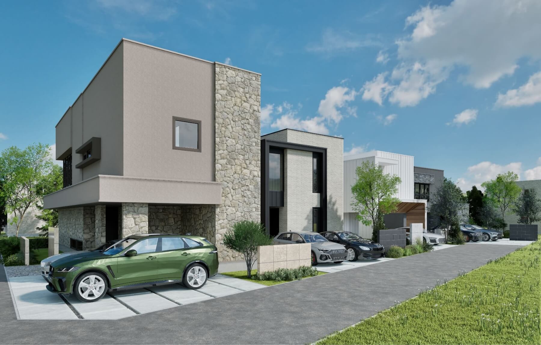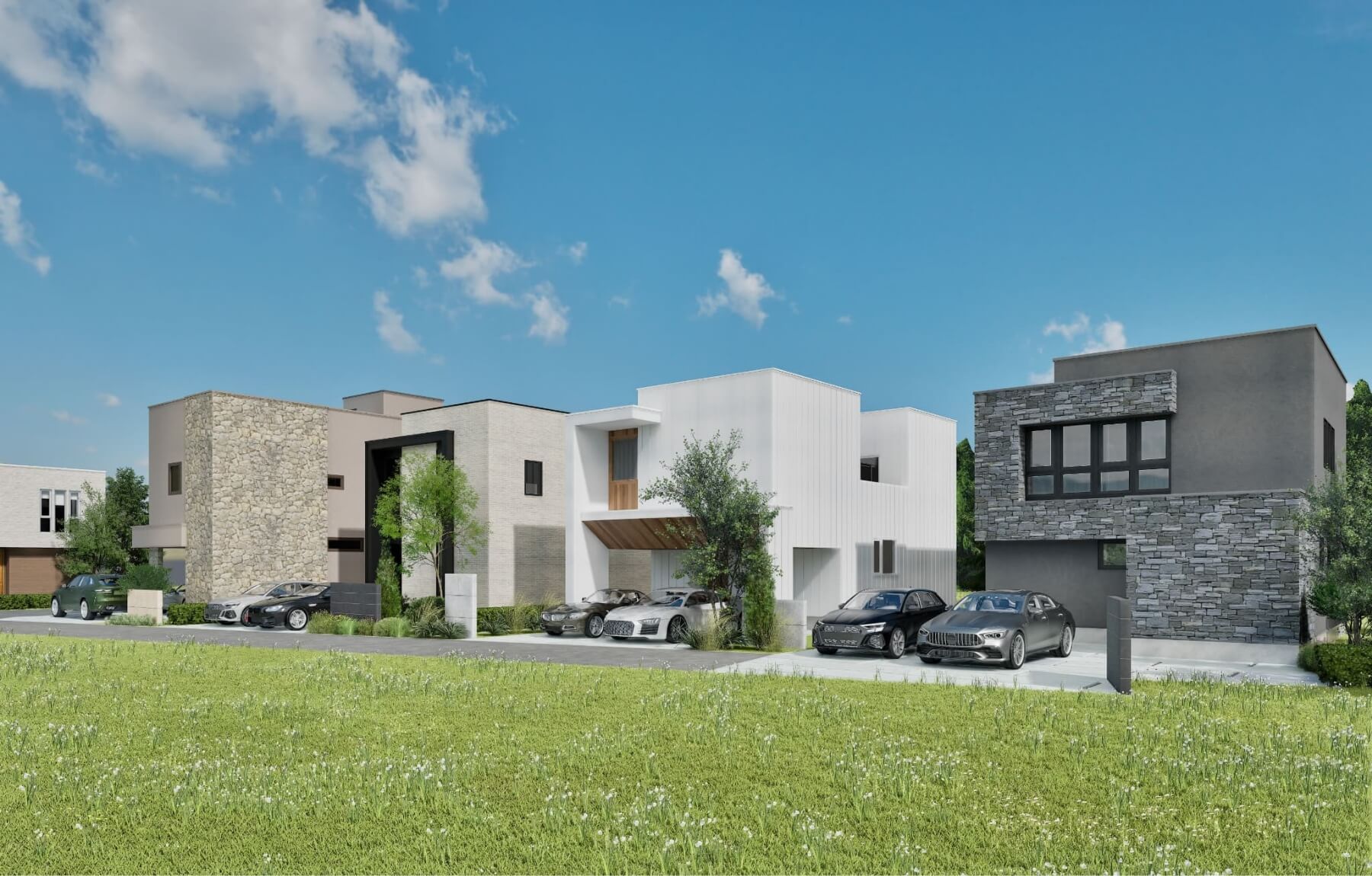 四つの邸宅が調和する、街区の全容。